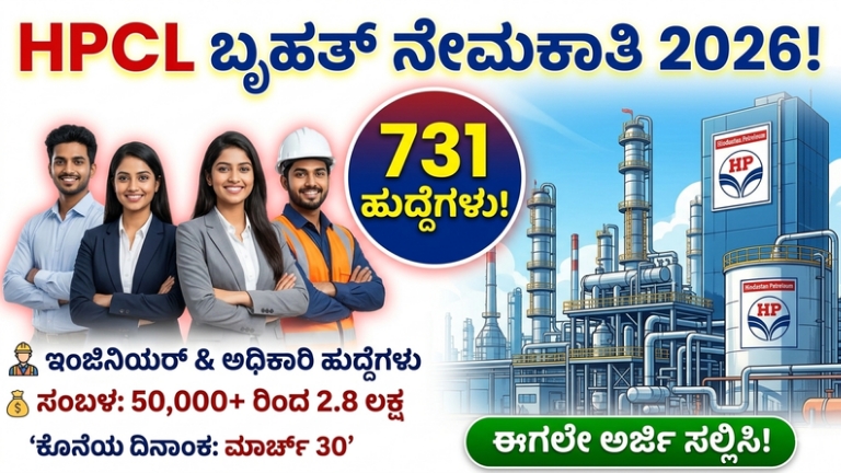HPCL Recruitment 2026:ಭಾರತೀಯ ತೈಲ ಮತ್ತು ಅನಿಲ ಕ್ಷೇತ್ರದಲ್ಲಿ ಮುಂಚೂಣಿಯಲ್ಲಿರುವ ‘ಮಹಾರತ್ನ’ ಕಂಪನಿ ಹಿಂದೂಸ್ತಾನ್ ಪೆಟ್ರೋಲಿಯಂ ಕಾರ್ಪೊರೇಷನ್ ಲಿಮಿಟೆಡ್ (HPCL) ನಿಂದ 2026ನೇ ಸಾಲಿನ ಅತ್ಯಂತ ದೊಡ್ಡ …