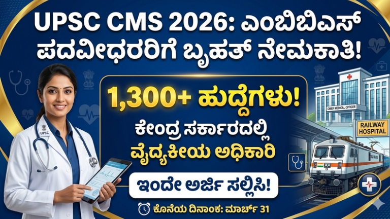 UPSC CMS Recruitment 2026: ವೈದ್ಯಕೀಯ ಕ್ಷೇತ್ರದಲ್ಲಿ ಹೊಸ ಮೈಲಿಗಲ್ಲು ಭಾರತೀಯ ವೈದ್ಯಕೀಯ ಕ್ಷೇತ್ರದಲ್ಲಿ ಸರ್ಕಾರಿ ಉದ್ಯೋಗ ಎನ್ನುವುದು ಕೇವಲ ಕೆಲಸವಲ್ಲ, ಅದೊಂದು ಸಾಮಾಜಿಕ ಗೌರವ ಮತ್ತು …