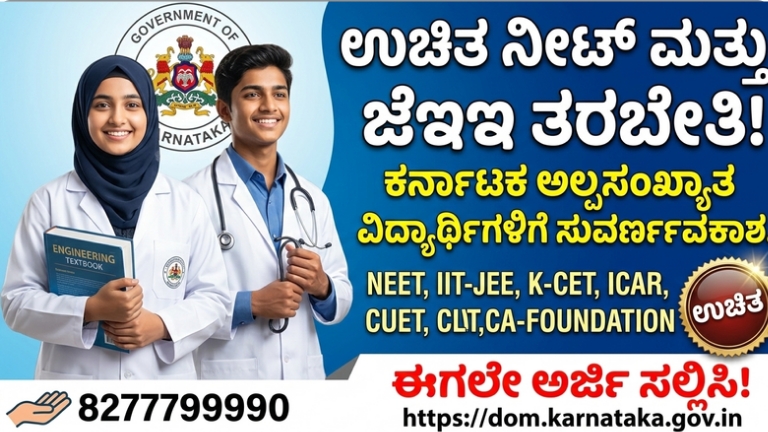 ಕರ್ನಾಟಕದ ಅಲ್ಪಸಂಖ್ಯಾತ ವಿದ್ಯಾರ್ಥಿಗಳಿಗೆ ಬಂಪರ್ ಕೊಡುಗೆ: ಪಿಯುಸಿ ಜೊತೆಗೆ ಉಚಿತ NEET, JEE, CET ತರಬೇತಿ! ಅರ್ಜಿ ಸಲ್ಲಿಕೆ ಹೇಗೆ? ಇಲ್ಲಿದೆ ಸಂಪೂರ್ಣ ಮಾಹಿತಿ.